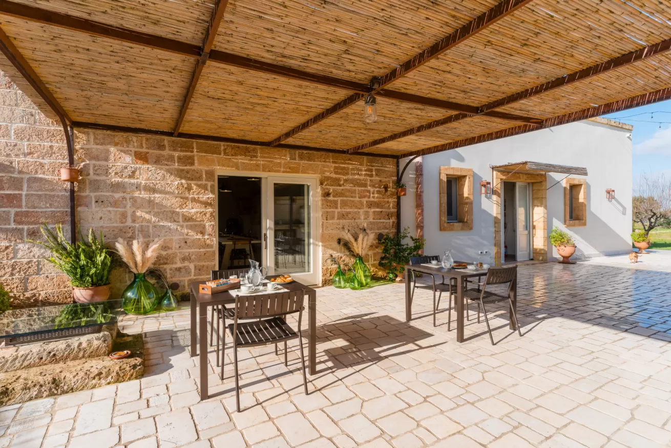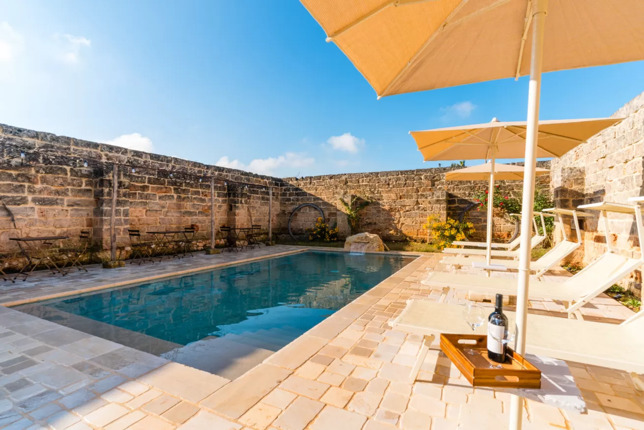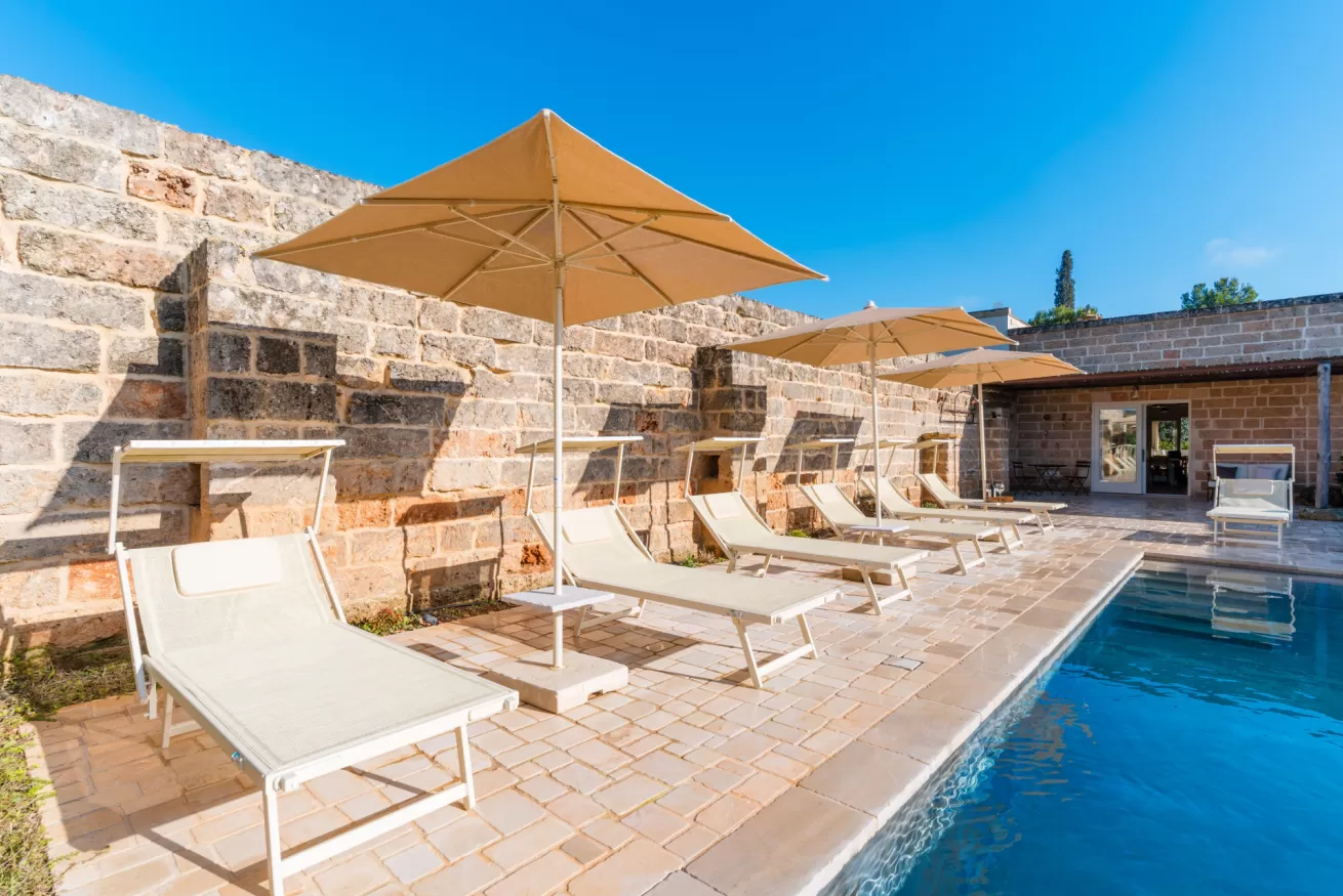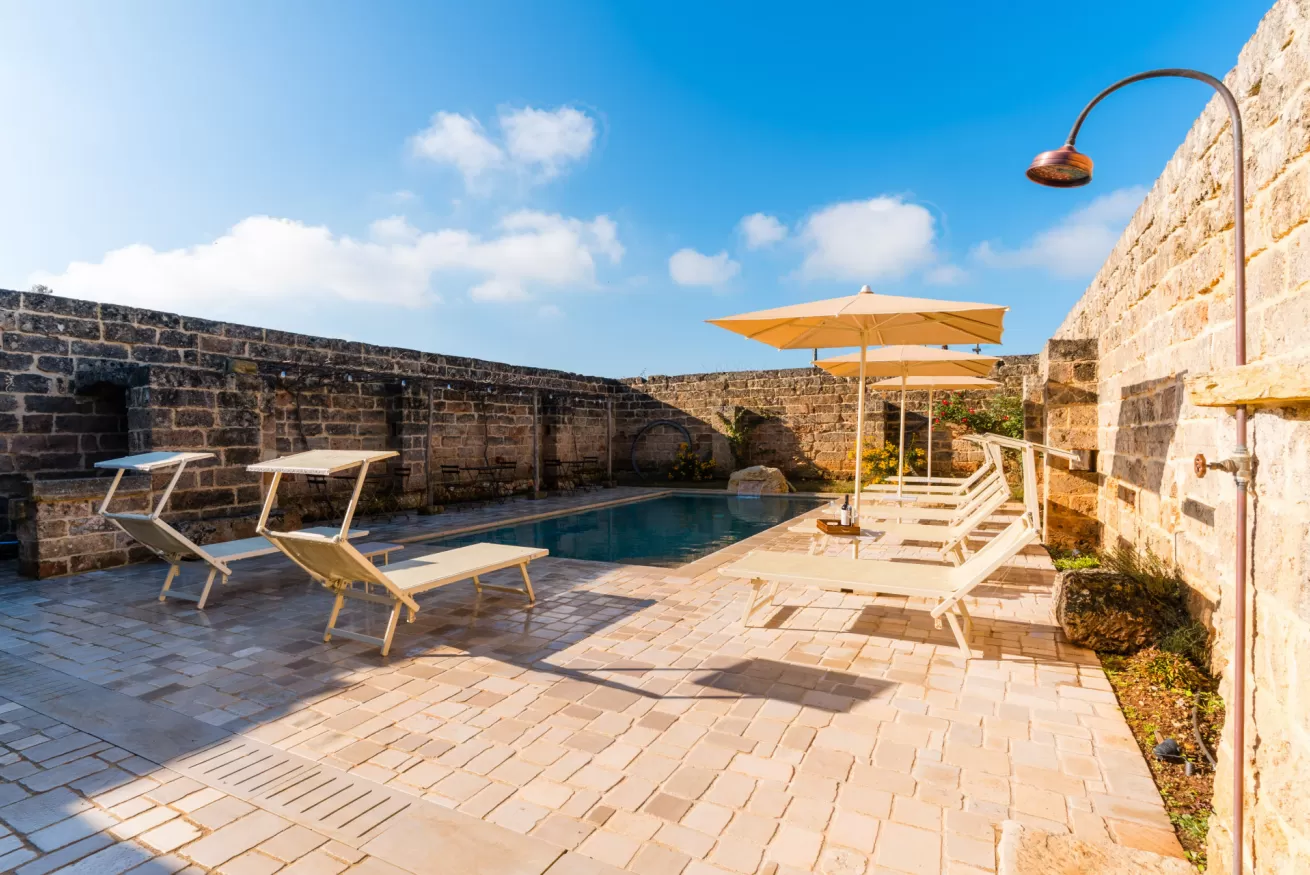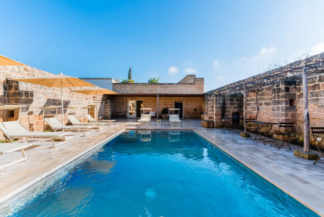 Ristrutturata nel rispetto dell’architettura rurale locale, la masseria conserva il fascino originale della pietra salentina, arricchendolo con servizi moderni e un’ospitalità attenta, ideale per coppie, famiglie e piccoli gruppi.