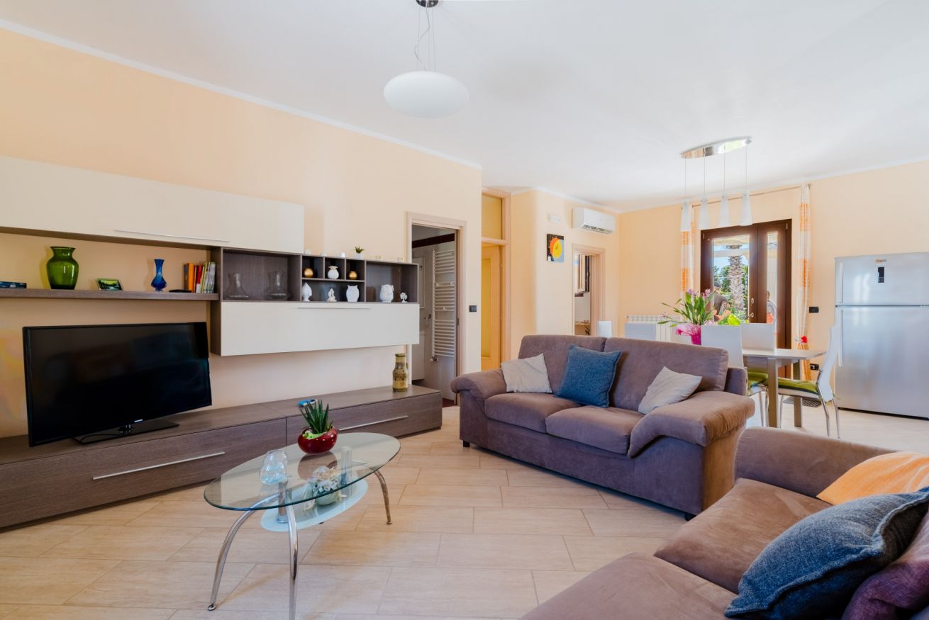 • Ampia e luminosa zona living con comodi divani, TV e spazio perfetto per rilassarsi.