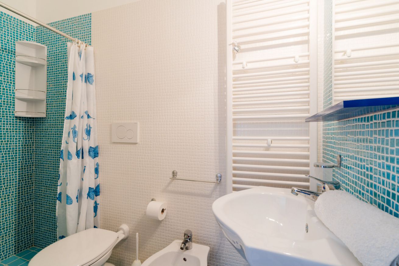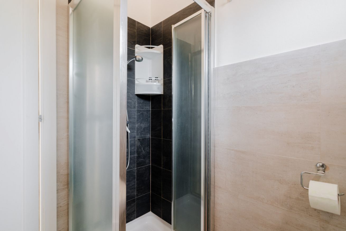 • Bagno moderno con doccia e set cortesia.