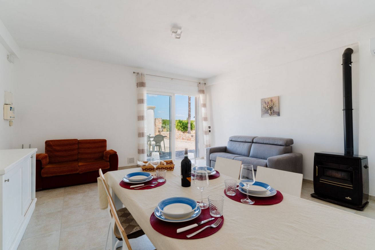 • Zona living con divano letto, area pranzo e accesso diretto all’esterno.