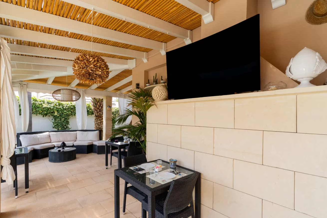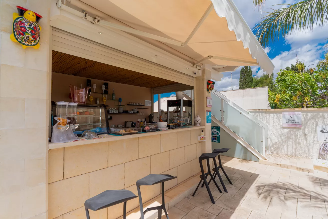 L’area esterna ospita anche un angolo bar, ideale per gustare un cocktail, un aperitivo o una bevanda fresca condividendo momenti di convivialità con altri ospiti, in un ambiente curato e tranquillo.