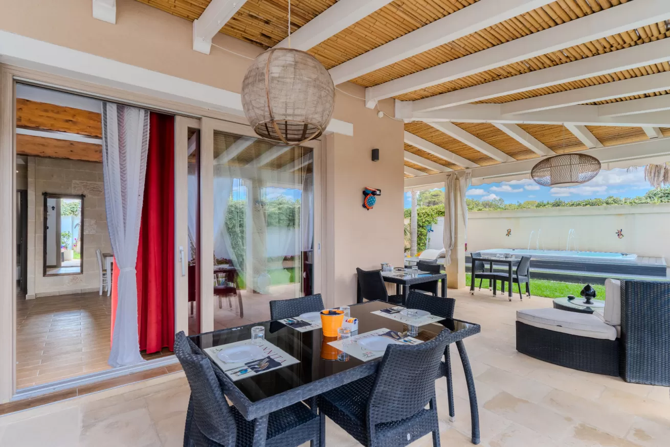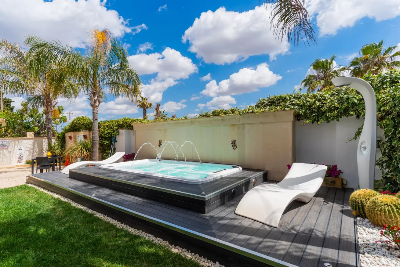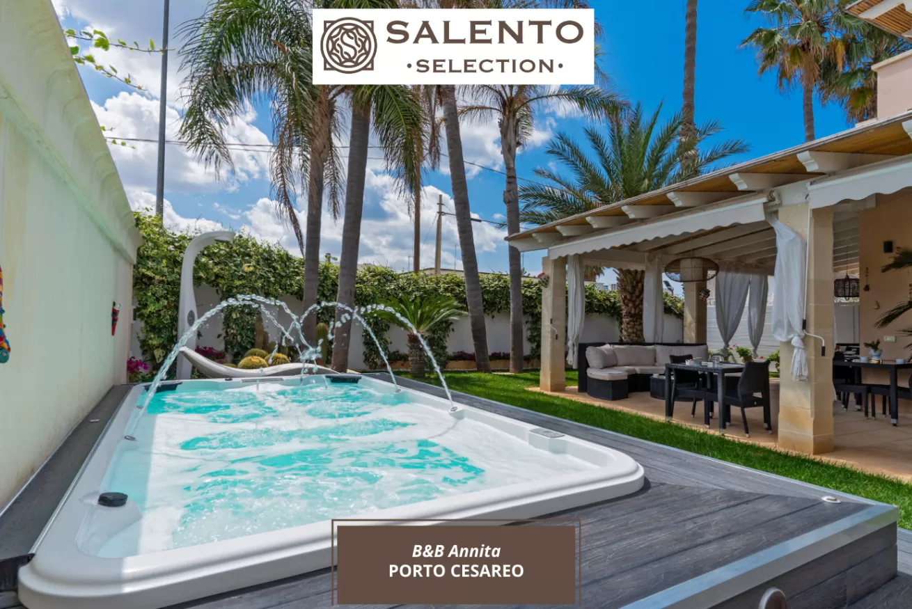 Un fiore all’occhiello di Annita è la zona comune esterna, dove potrai concederti momenti di puro benessere nella vasca idromassaggio, perfetta per rilassarsi dopo una giornata in spiaggia o per godersi un aperitivo al tramonto sotto il cielo salentino.