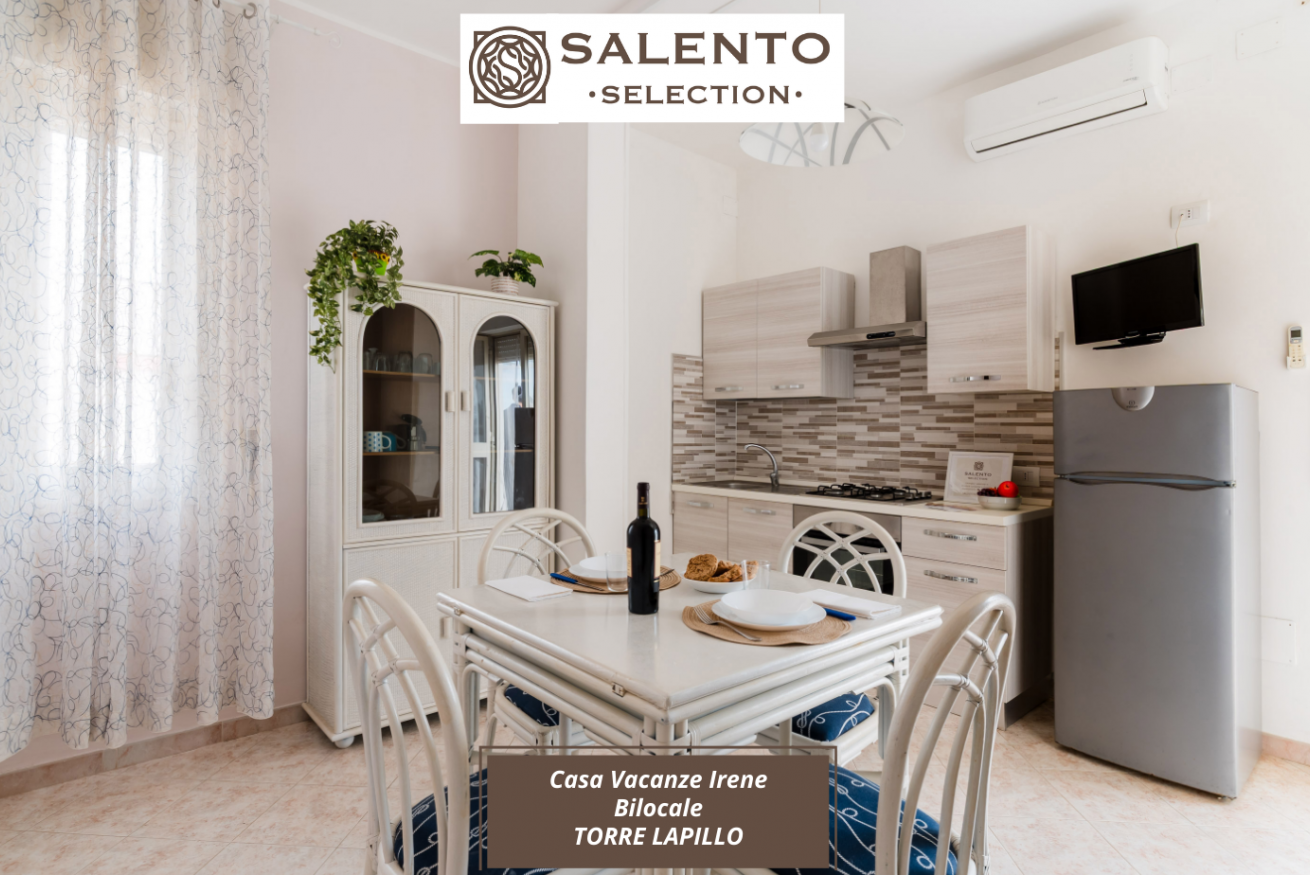 Casa Vacanze Irene situata al piano primo servito da scale, un appartamento bilocale con zona pranzo, cucina attrezzata, una camera con letto matrimoniale, e bagno privato. Zona Esterna con ampio balcone.