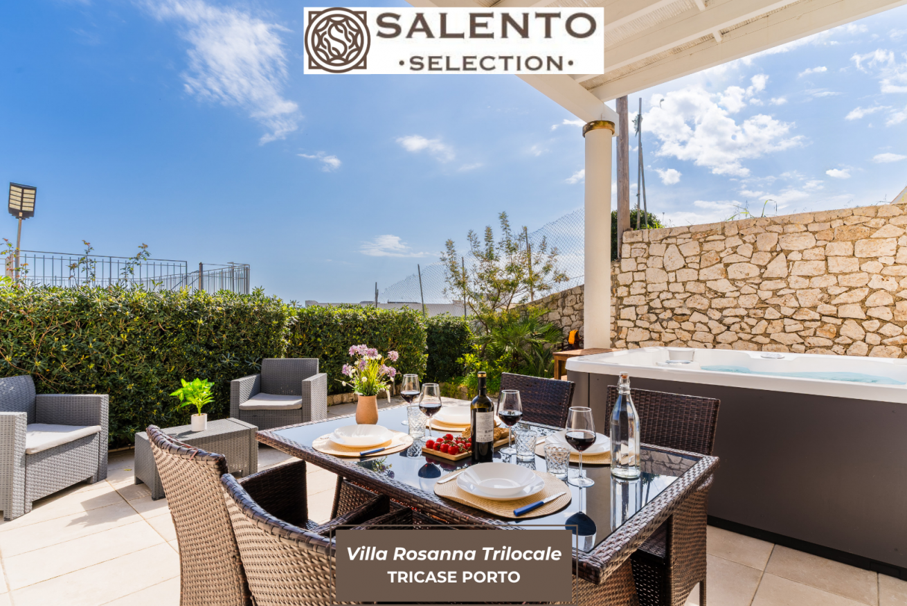 A pochi passi dal mare di Tricase Porto, Villa Rosanna Trilocale è una soluzione ideale per chi cerca comfort e privacy, arricchite da un plus esclusivo: la vasca idromassaggio privata. Una casa pensata per vivere il Salento con più qualità, tra spazi esterni curati e ambienti luminosi.